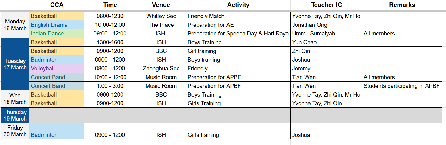 CCA Schedule